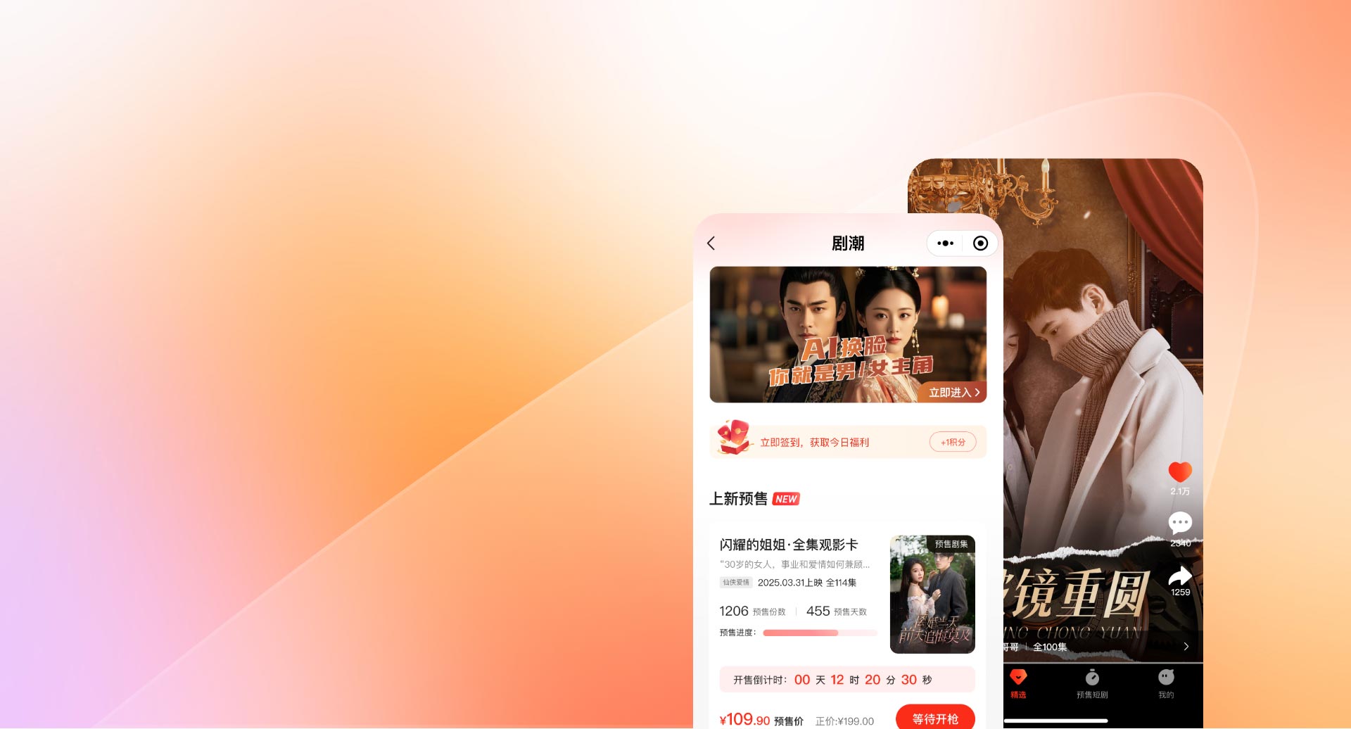 剧集 AI 换脸,用户可以通过 AI 技术实现个性化换脸,参与定制剧内容的体验,增强互动社交乐趣。让用户可以将自己的面孔融合到短剧角色中,实现主角梦想。让你成为朋友圈的社交霸主。